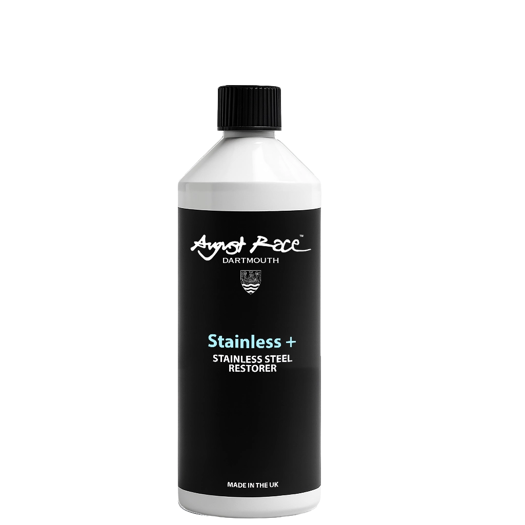 August Race™ Stainless+ is a highly effective, fast acting stainless steel cleaner/ restorer designed to remove water marks and carbon deposits from stainless fittings